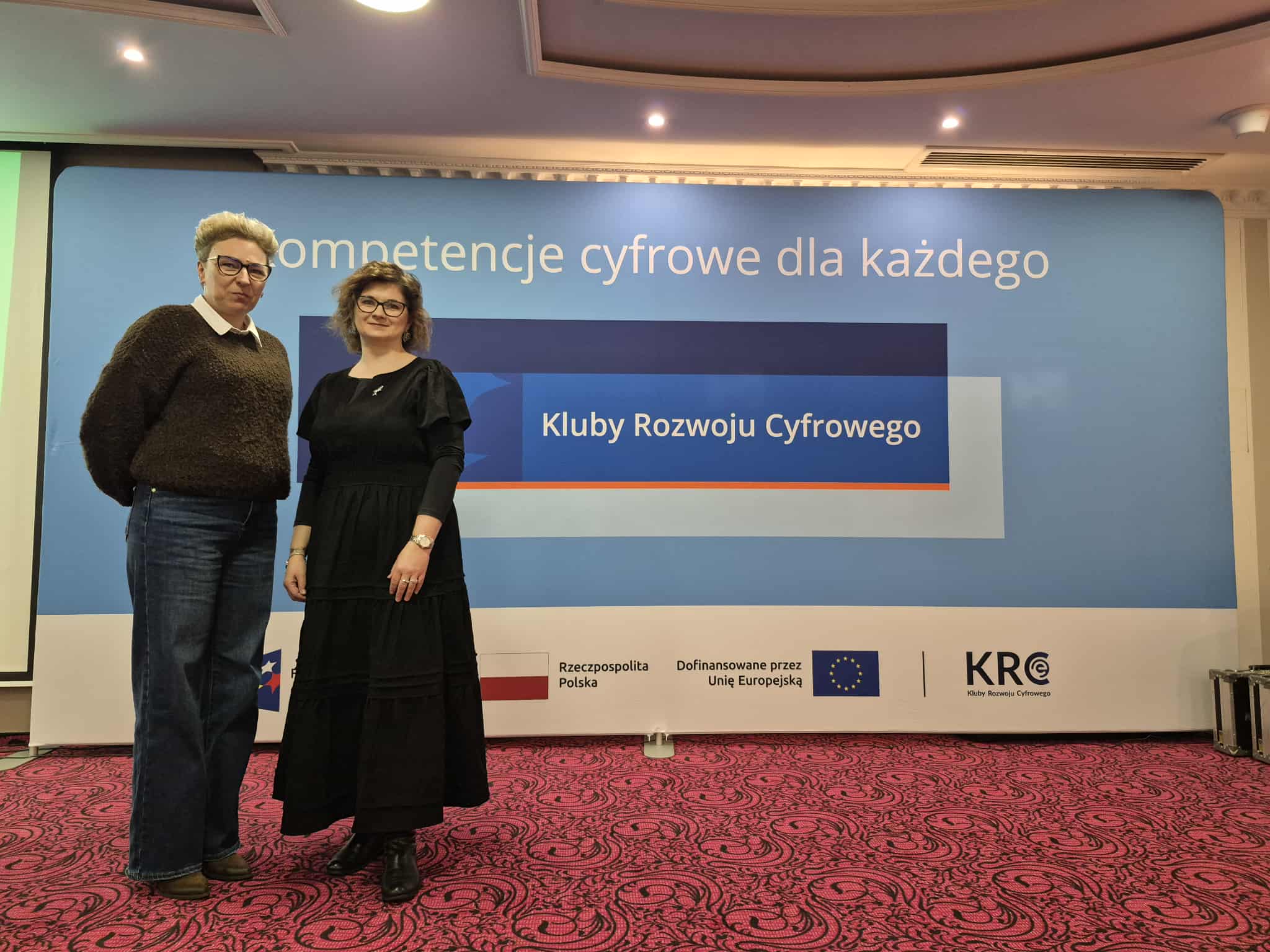 Iwona Niska oraz Aneta Adamska wzięły udział w konferencji poświęconej idei Klubów Rozwoju Cyfrowego – inicjatywy, której celem jest wyrównywanie szans w dostępie do kompetencji cyfrowych. Spotkanie stanowiło okazję do przybliżenia roli, jaką Kluby odgrywają w przeciwdziałaniu wykluczeniu cyfrowemu, szczególnie na obszarach o ograniczonym dostępie do podstawowych usług publicznych i szkoleniowych.