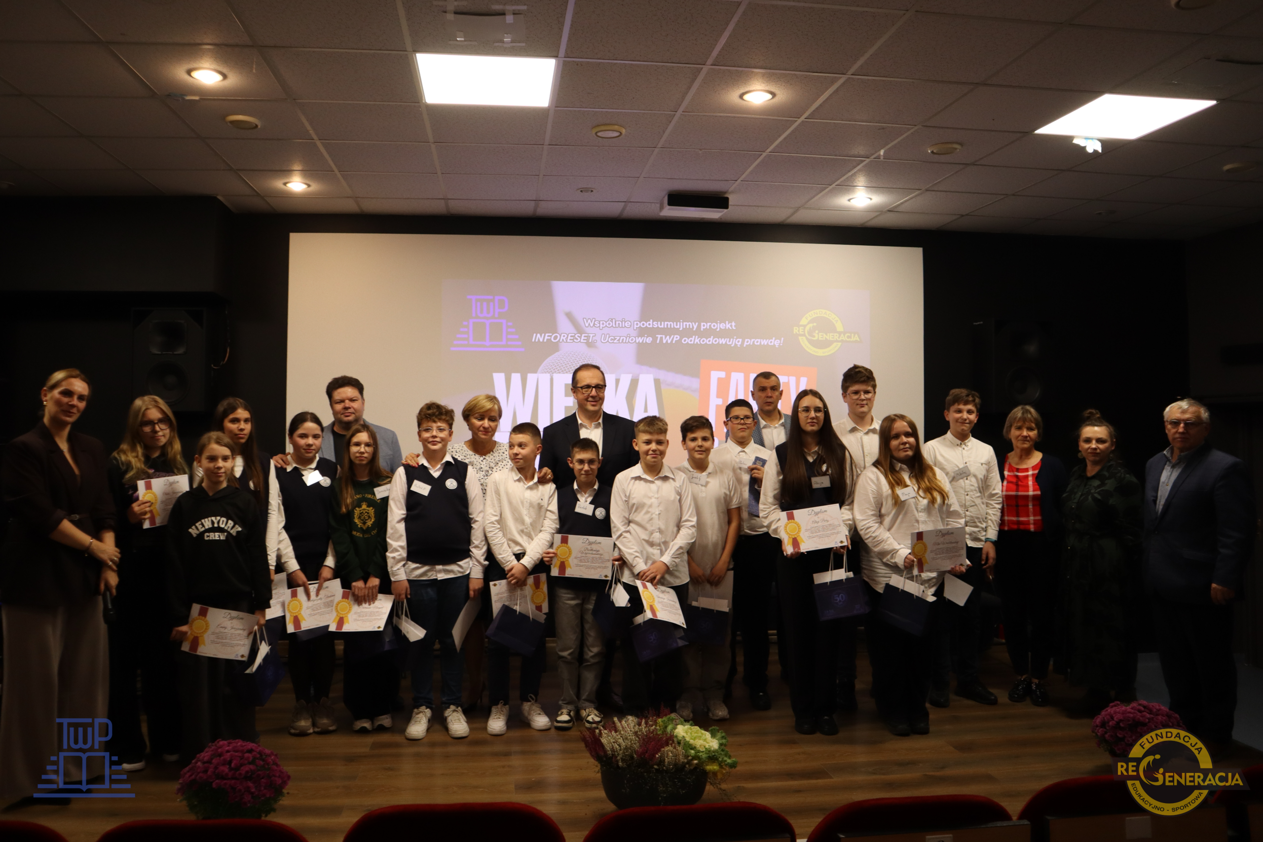 Dziś odbyła się Wielka Debata pn. „Fakty vs. Fejki”, podczas której podsumowaliśmy projekt Szkoły Podstawowej TWP w Ciechanowie – „INFORESET. Uczniowie TWP Odkodowują Prawdę” koordynowany przez nas